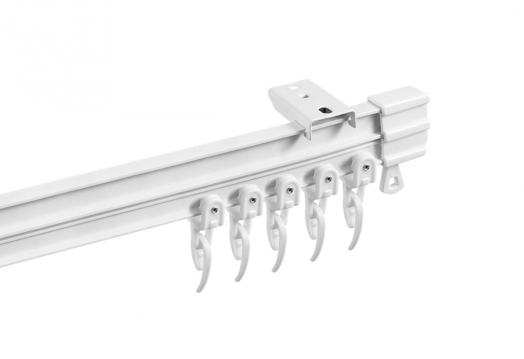 Карниз гибкий, бегунки-ролики, крючки, заглушки, кронштейны (потолочное крепление), комплект крепежей. |