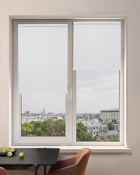 Рулонные шторы серии «Декор» выполнены в приятных цветах из однотонной ткани. Рольшторы из легкой ткани помогают сохранить атмосферу уединенности, но при этом не закрывают от дневного света.