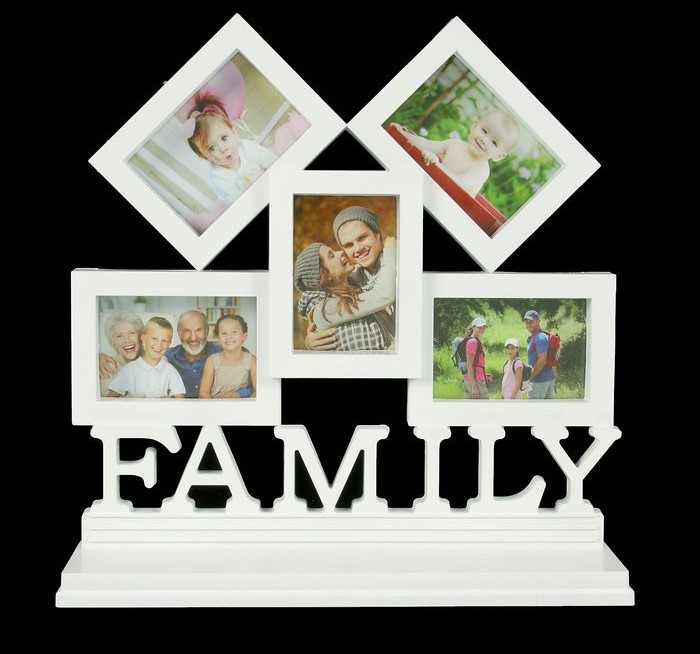 Фоторамка пластик на 5 фото на подставке 5х8 см "Семья" белая 27х27х7 см 2257926