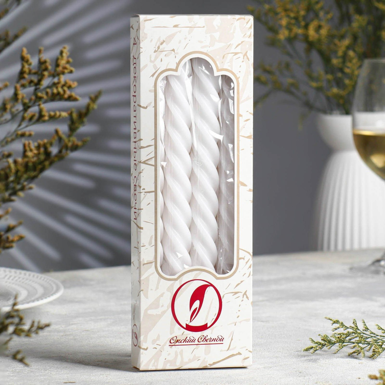 Набор свечей витых, 2,3х 24,5 см, 5 ч, 50 г, 4 штуки, белый 1575436