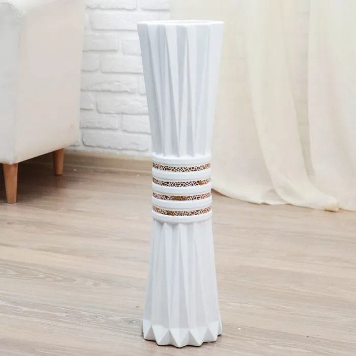 Ваза керамика напольная "Геометрия люкс" пояс, 16х60 см, белый 4635453