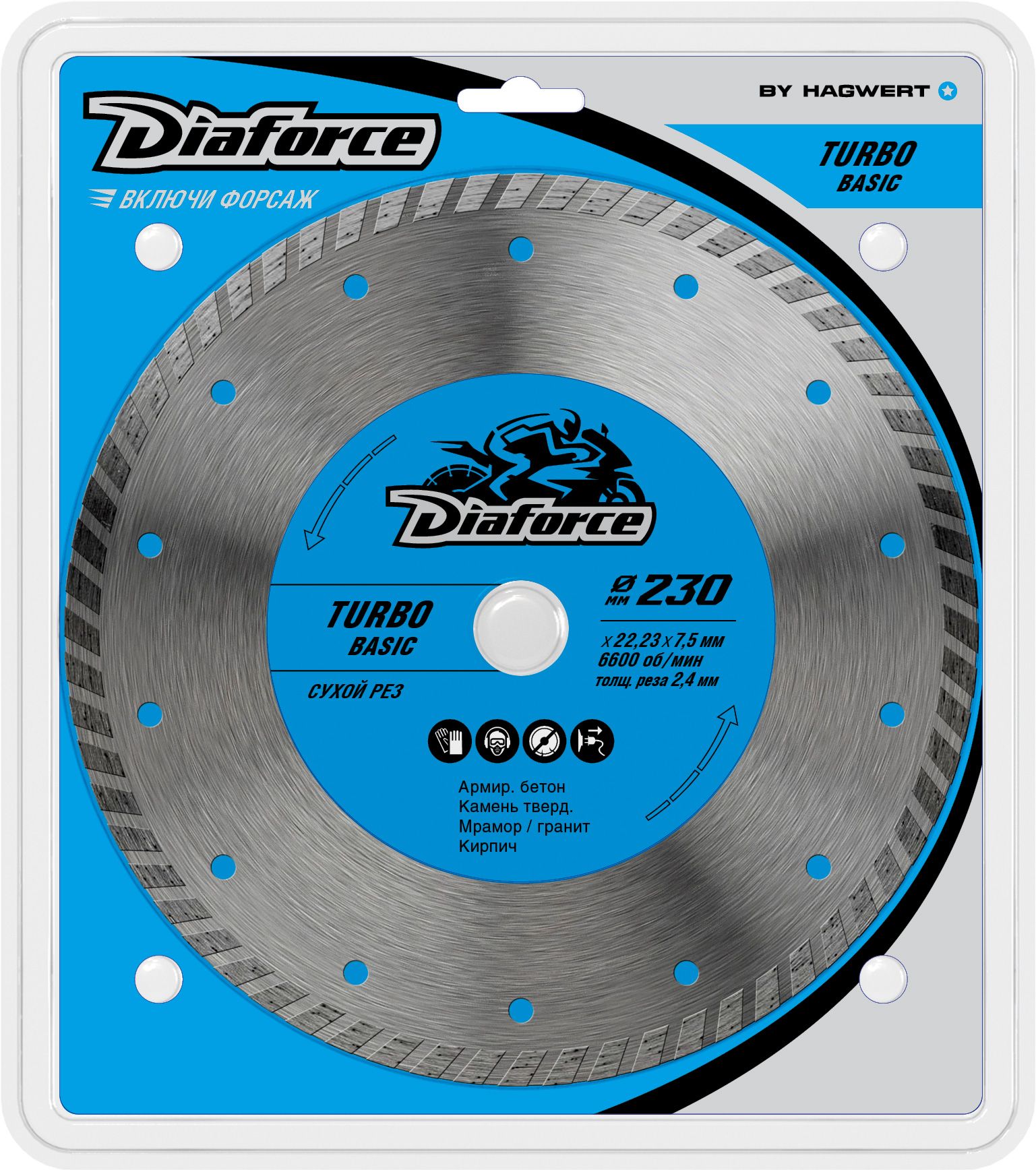 Диск алмазный 230*22,23*2,4мм по железобетону ТУРБО сухой рез 511230 TurboBasic Diaforce *1/10/20