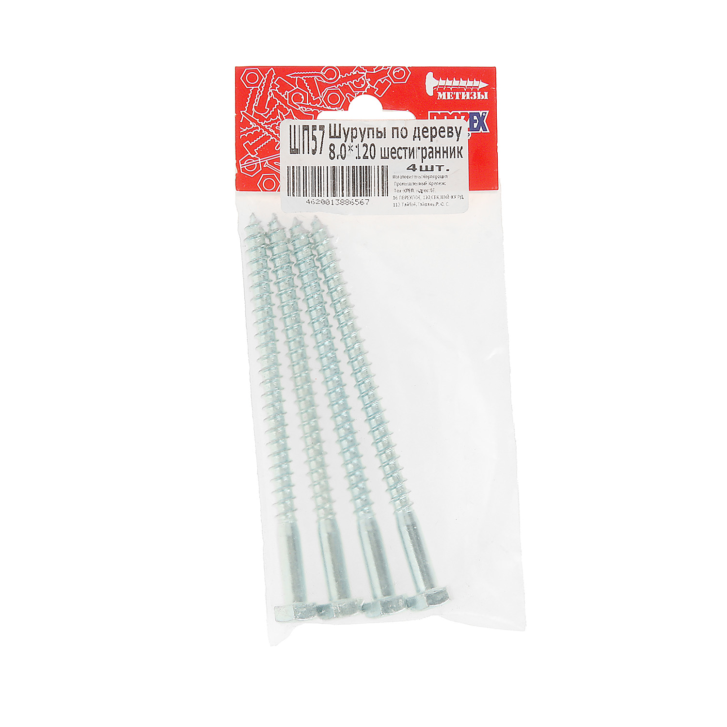 Шурупы по дереву BROZEX  8,0*120 шестигранник (4шт) *10/100