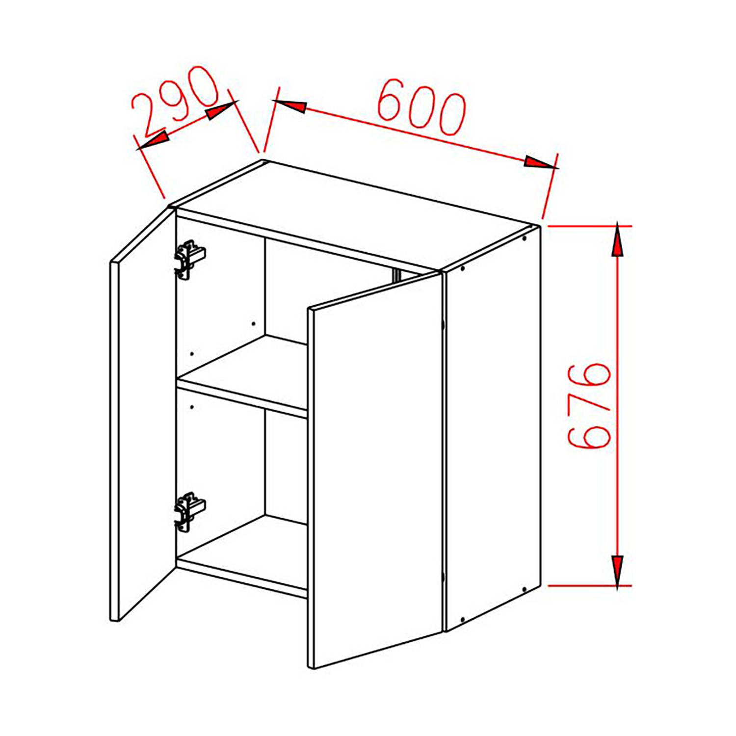 Шкаф навесной 600х676х290 мм BROZEX-WOOD Melissa, с двумя дверцами, белый
