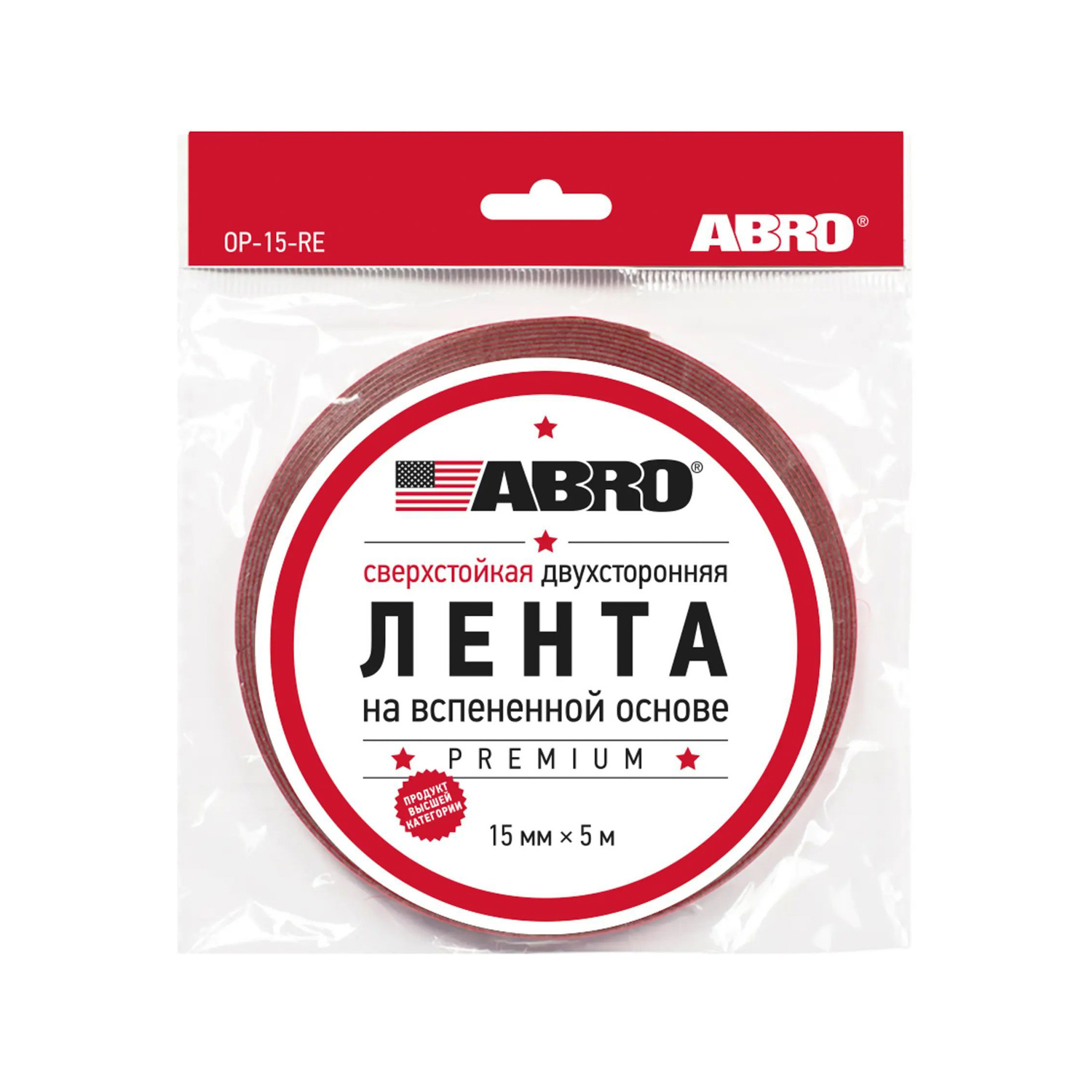 Лента клейкая двусторонняя на вспененной основе Сверхстойкая Белая 15мм х5м OP-15-RE "ABRO" *1/575
