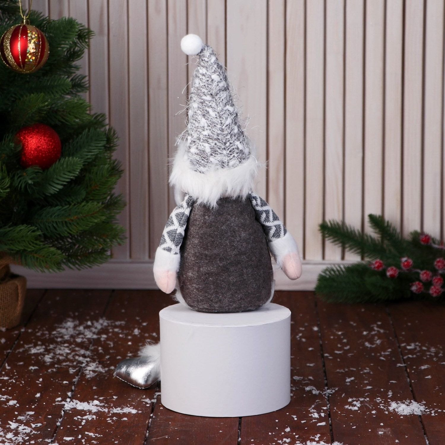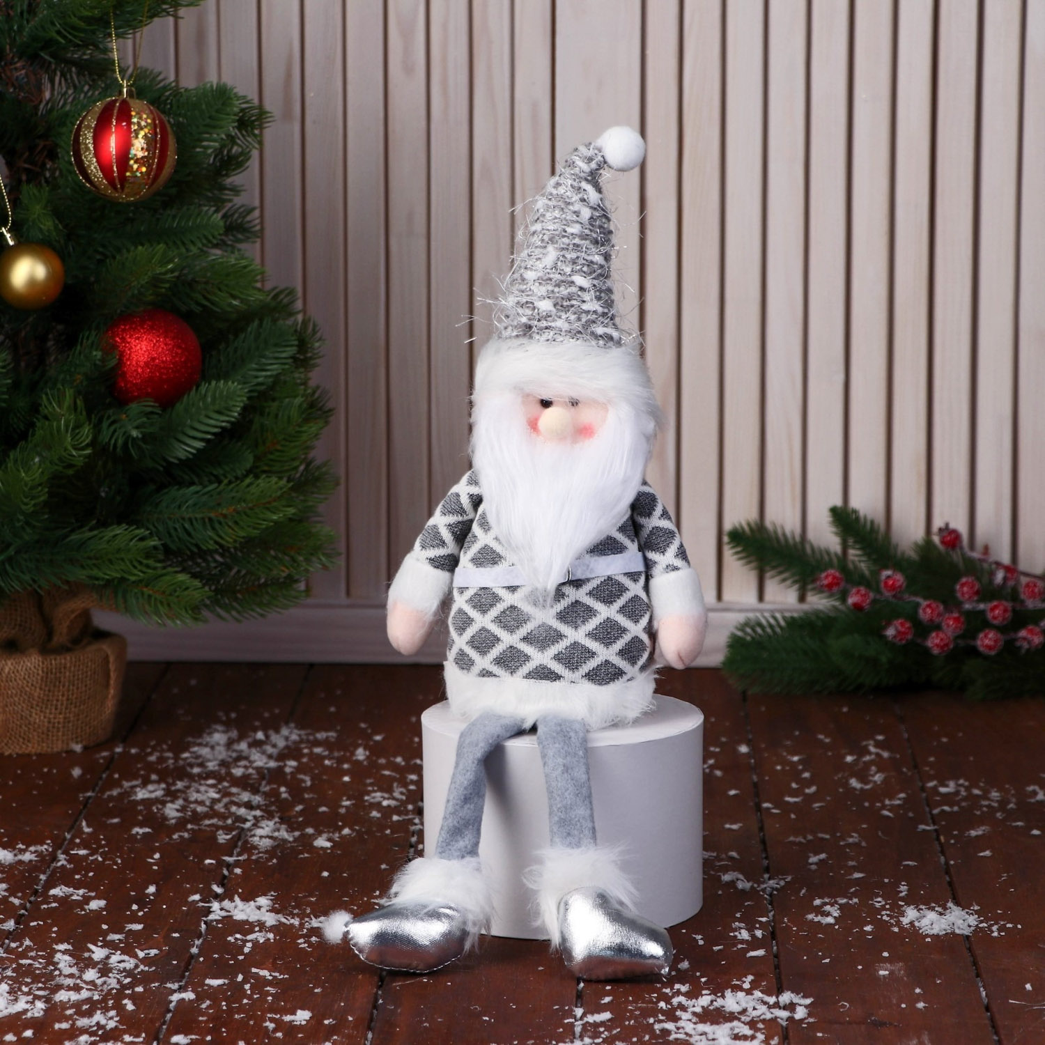 Мягкая игрушка "Дед Мороз в костюме с ремешком" 15х39 см, серый 9692550