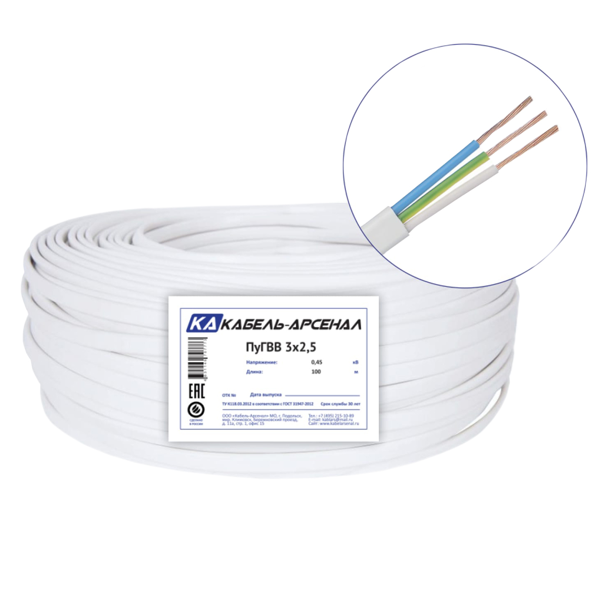 Провод ПуГВВ-П/ПГВВП 3*2,5 ГОСТ (100м) *100