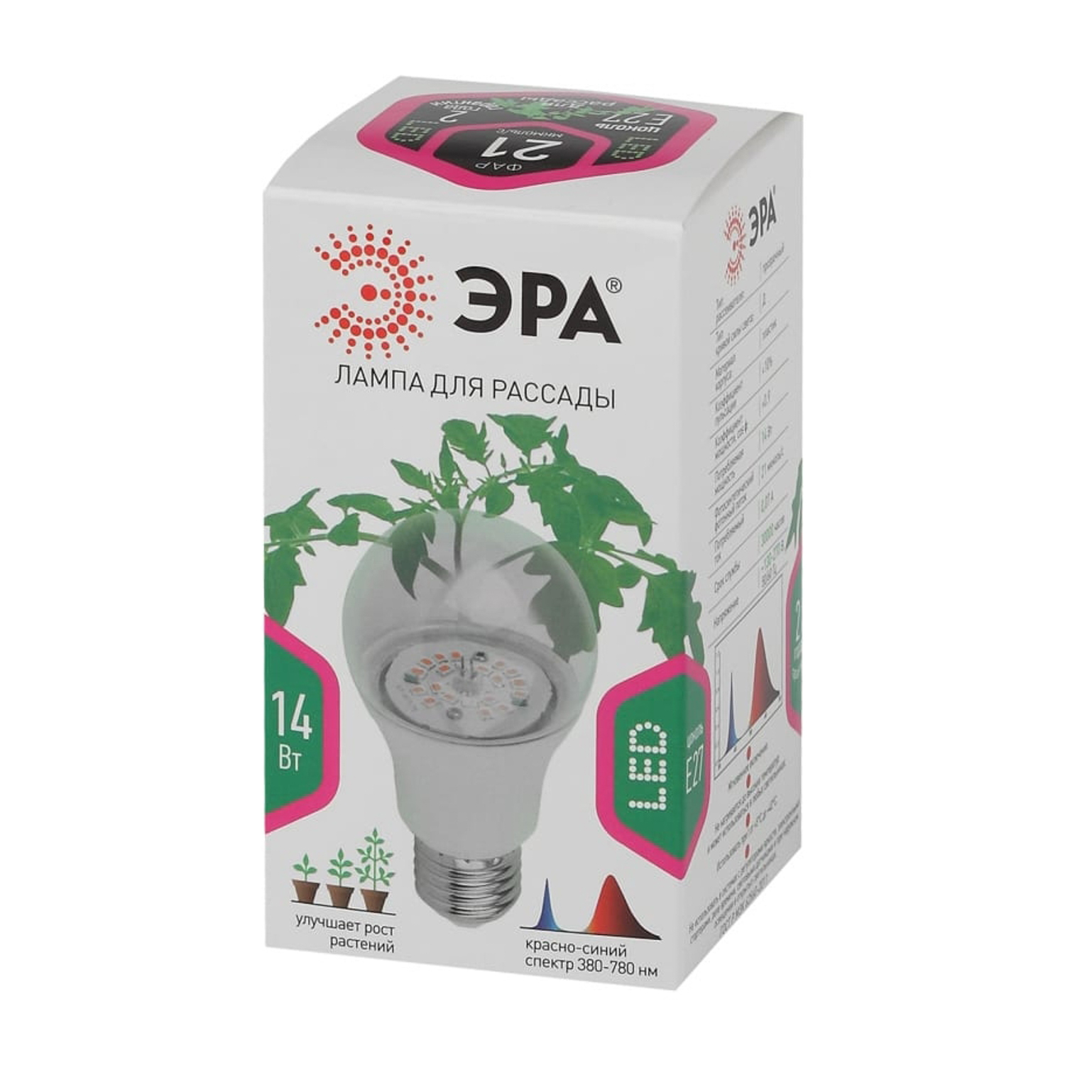 Лампа светодиодная ФИТО 14W Е27 груша Эра FITO-14W-RB-E27-K *1/12/36