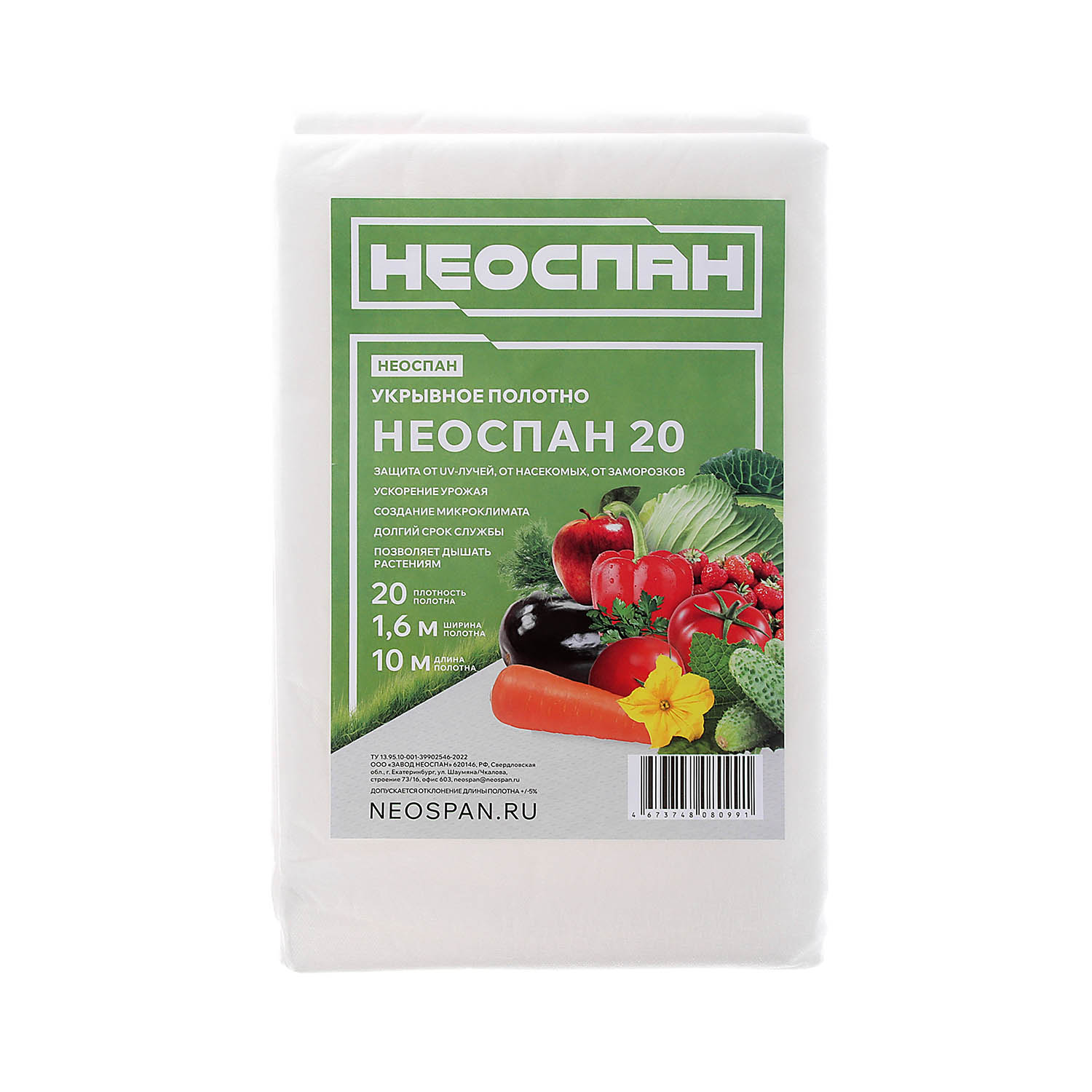 Укрывной материал 20 г/м² AGROBIO Неоспан, 1.6х10 м, белый