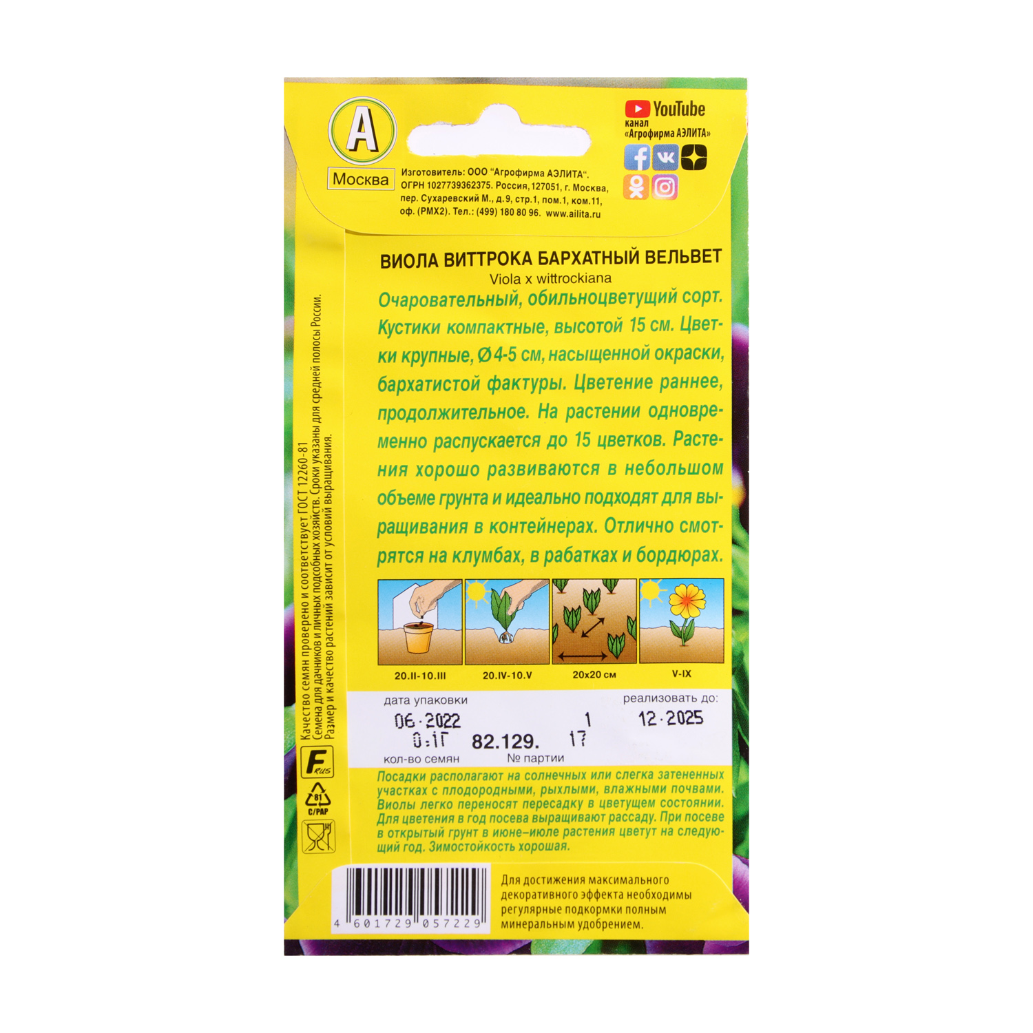 Семена Виола Бархатный вельвет 0,1гр Аэлита цв *10/200