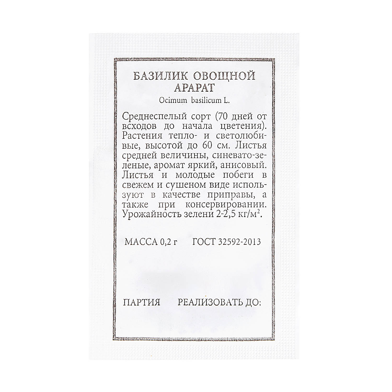 Семена Базилик Арарат овощной 0,2-0,3гр Аэлита БЕЛ *20/500