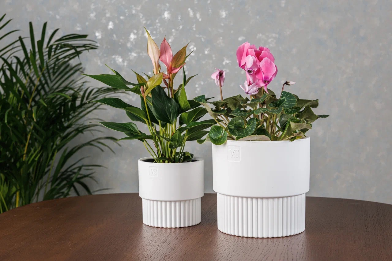 Кашпо пластм. "Бостон" 4,5л d верха 193мм h185мм со вставкой Белый АМБ-4,5-01 ("VipSet") *1/6