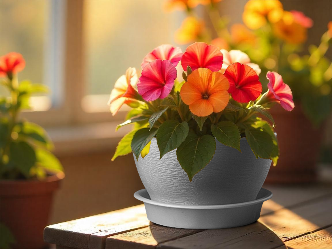 Кашпо пластм. "Фиалочка" 0,8л d верха 140мм h80мм с поддоном Серый перламутр. КФ 0,8ПГ *1/65