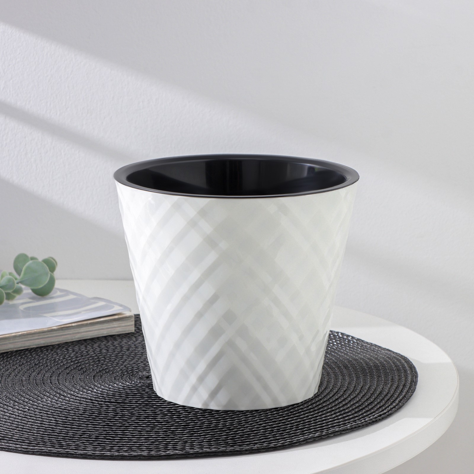 штПоверхность кашпо выполнена вертикальными волнами, сформированными по модели пустынного песка. Горшок укомплектован вкладышем для регулировки в нём воды. Между горшком и вкладышем есть пространство для воды, которая используется растениями при необходимости. Преимущества вкладыша: не нужен поддон, нет необходимости часто поливать цветы, корешки не подвергаются гниению. Материал устойчив к солнечному свету, низким температурам и механическим повреждениям. Кашпо выполнены в природных оттенках: белый, кремовый, серый. Является неповторимой деталью способной украсить и оживить интерьер любого дома.