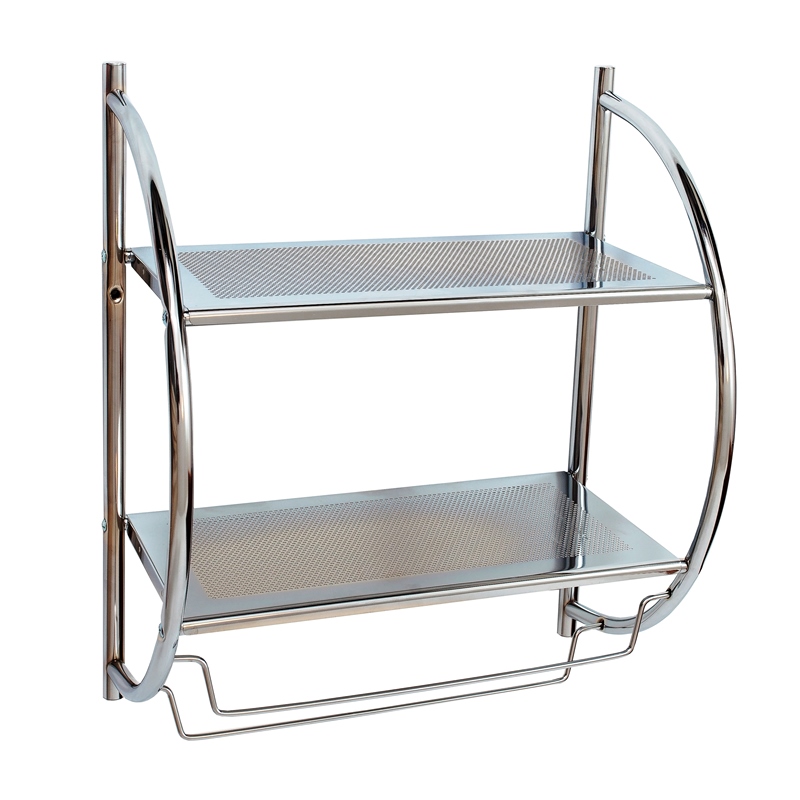 Полка двухъярусная настенная металлическая. Хромовое покрытие позволяет изделию не терять внешний вид. Стильный и функциональный аксессуар для любой ванной комнаты.