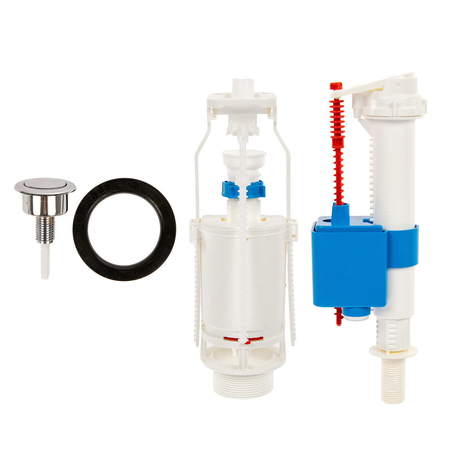 Арматура является важным механизмом, необходимым для правильной работы сливного бачка. Изделие произведено из высококачественного пластика, который обеспечивает длительную эксплуатацию без поломок. Наливной механизм с нижней подводкой и пластиковой резьбой диаметром 1/2" регулируется по высоте 265-355 мм (стойка механизма поворачивается, устанавливается нужная высота, после чего поворачивается обратно). Сливной механизм с хромированной кнопкой с одним режимом слива имеет регулировку по высоте 290-410 мм. Отверстие для кнопки слива в крышке бачка 40 мм, посадочное отверстие сливной арматуры 60 мм.