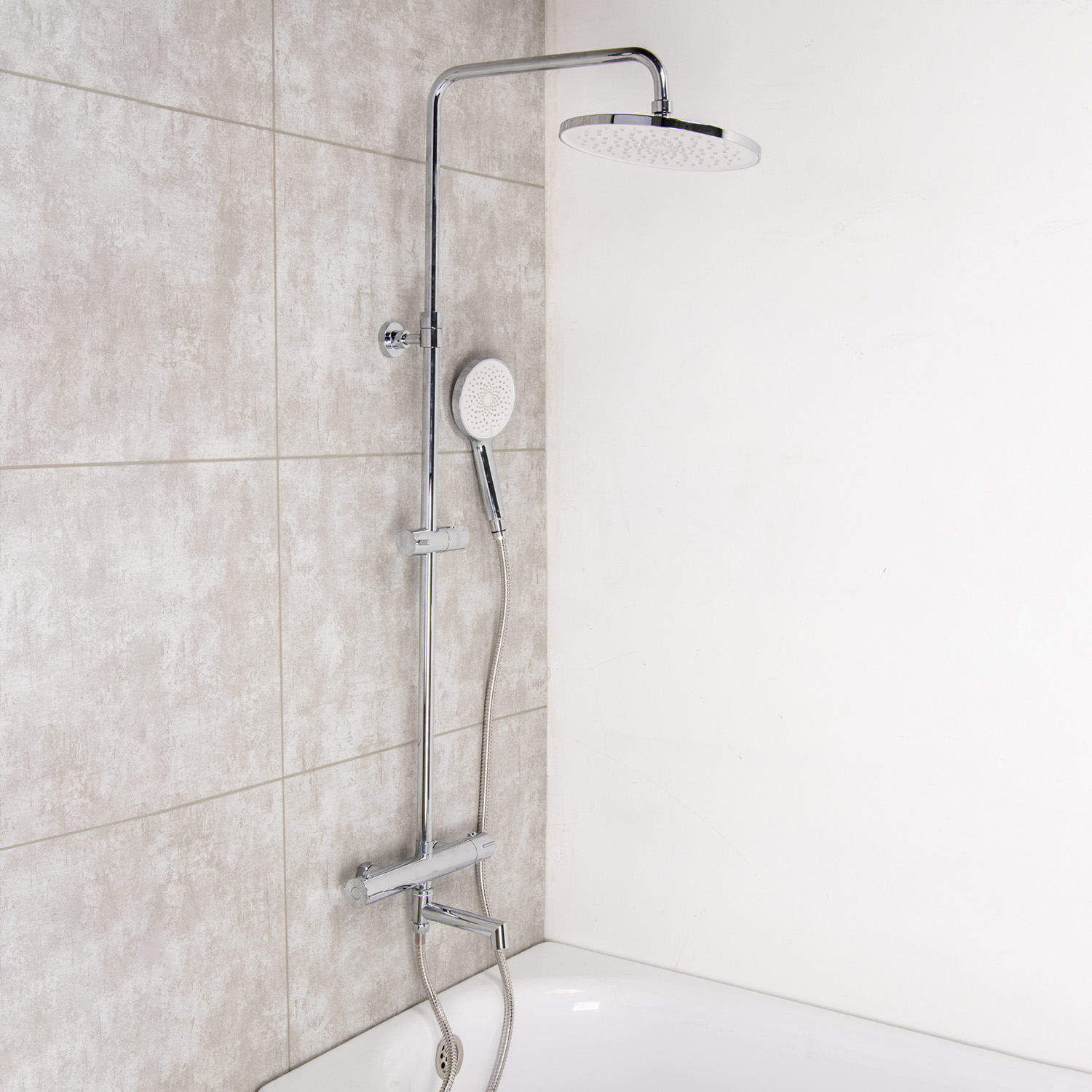 Смеситель д/ванны термостатич. со стойкой для душа + ручной и тропич. душ Milardo ILSSBTHM06 *1/3