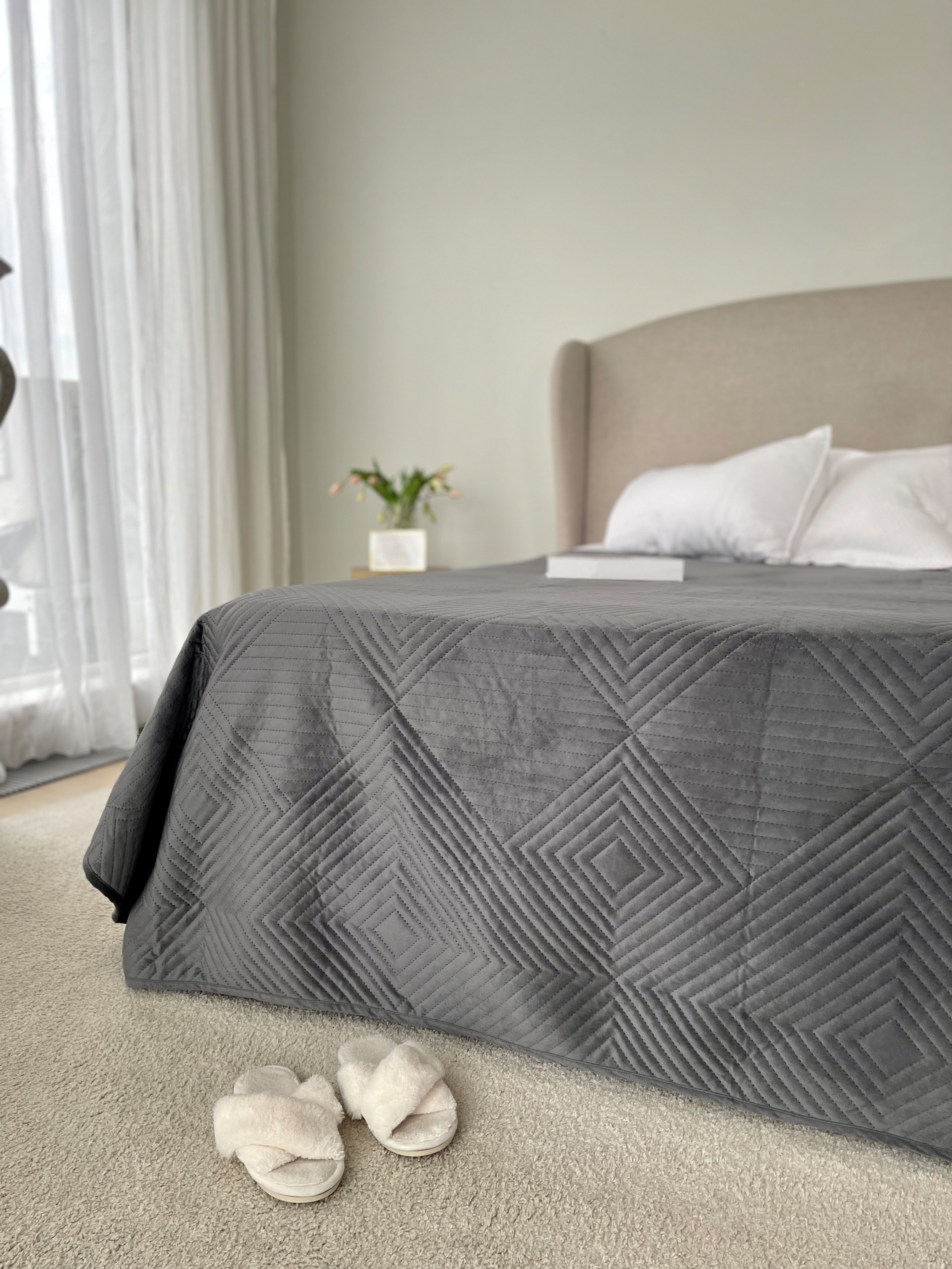 Покрывало 200х220см стеганое двухстороннее Dubai темно-серый Belezza *1