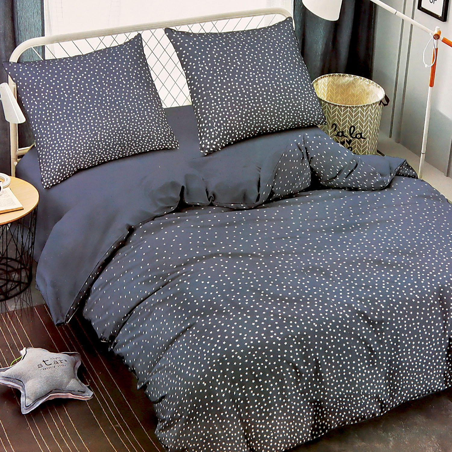 Стирка в теплой воде до 40 градусов, моющие средства для цветного белья без отбеливающего компонента, рекомендуется использовать ополаскиватели, сушка вдали от нагревательных приборов, глажка не требуется. Перед первым использованием комплект рекомендуется постирать.