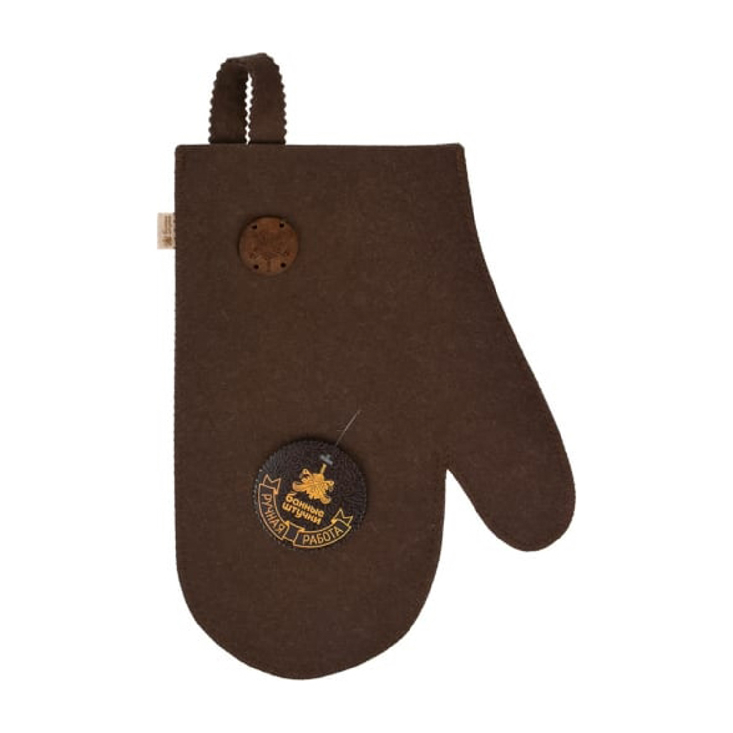 Рукавица для сауны коричневая с деревянным логотипом "Банные Штучки", войлок /20