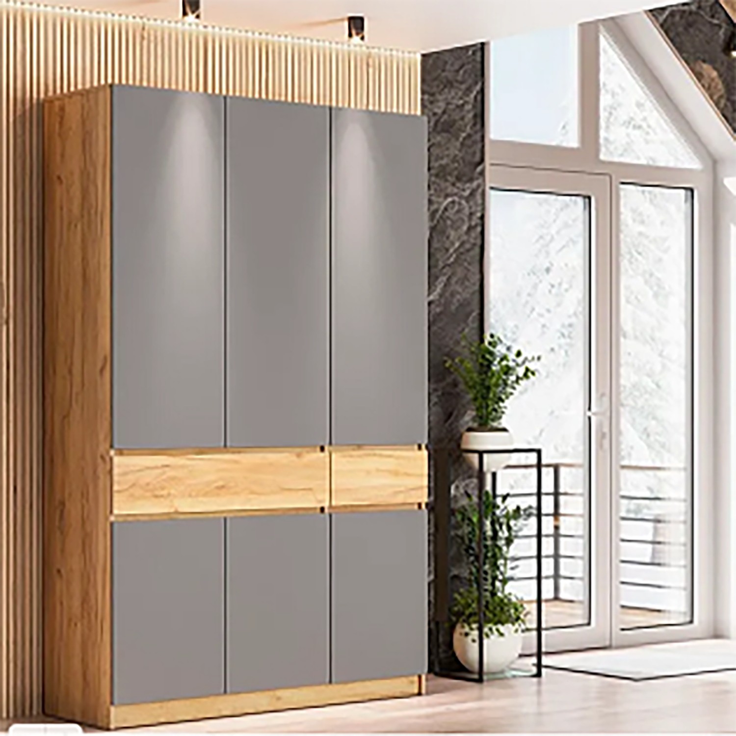Набор мебели для прихожей АВИНЬОН шкаф трёхстворчатый с ящиком Дуб Крафт Золотой/Графит серый*1