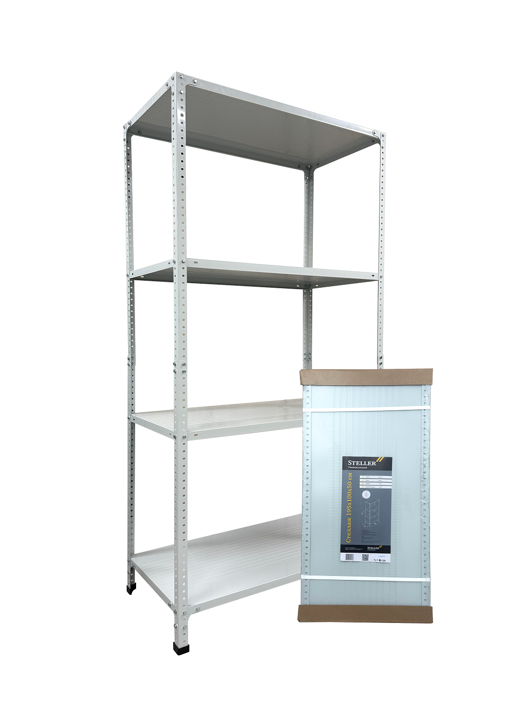 Стеллаж металл. "Steller" выс.1,95м, шир.1,0м, гл.0,5м, 4полки (мах нагр.на полку 100кг), Серый *1