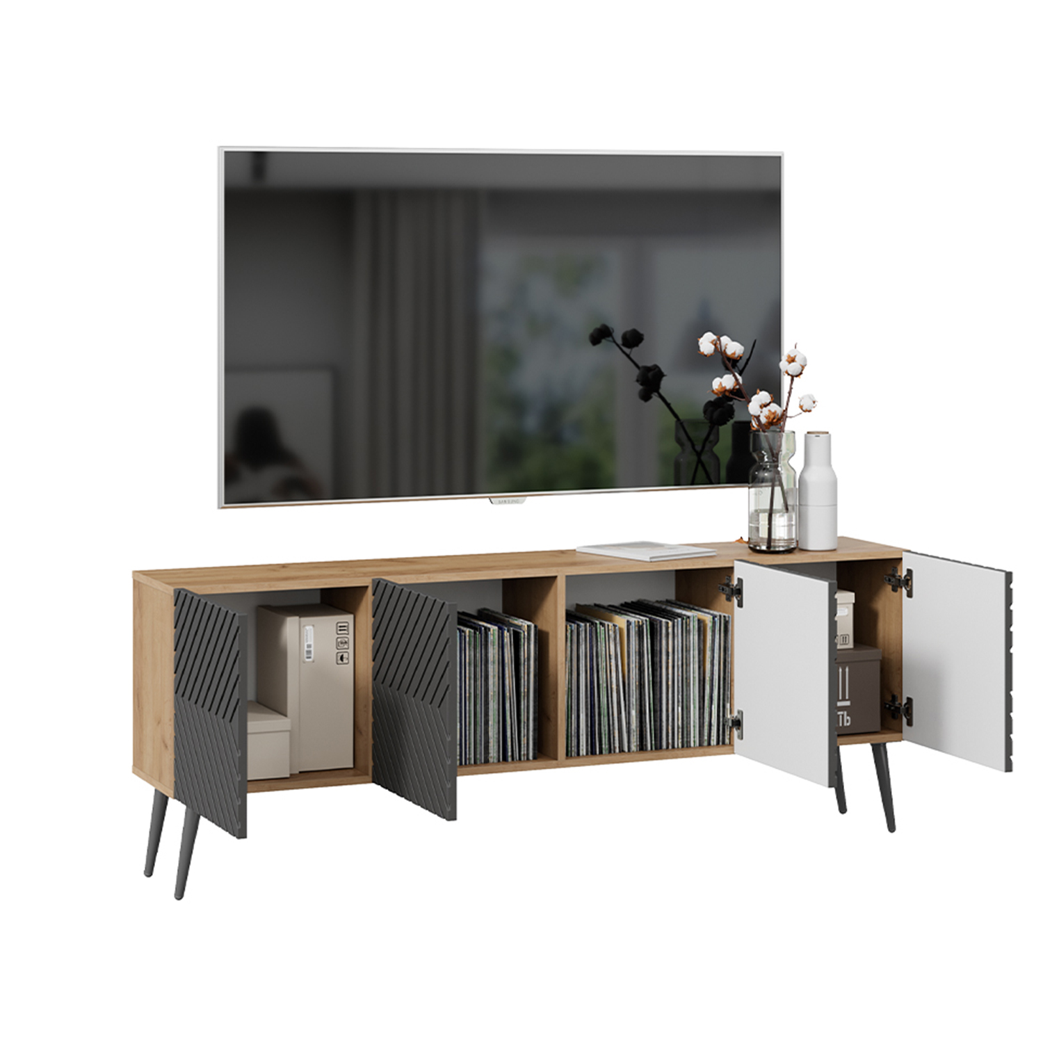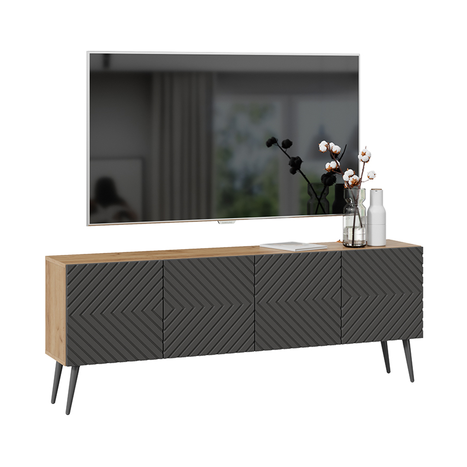 Тумба под ТВ Танго Тип1 1602х308хh400 (Дуб крафт золотой/Холст вулкан)*1