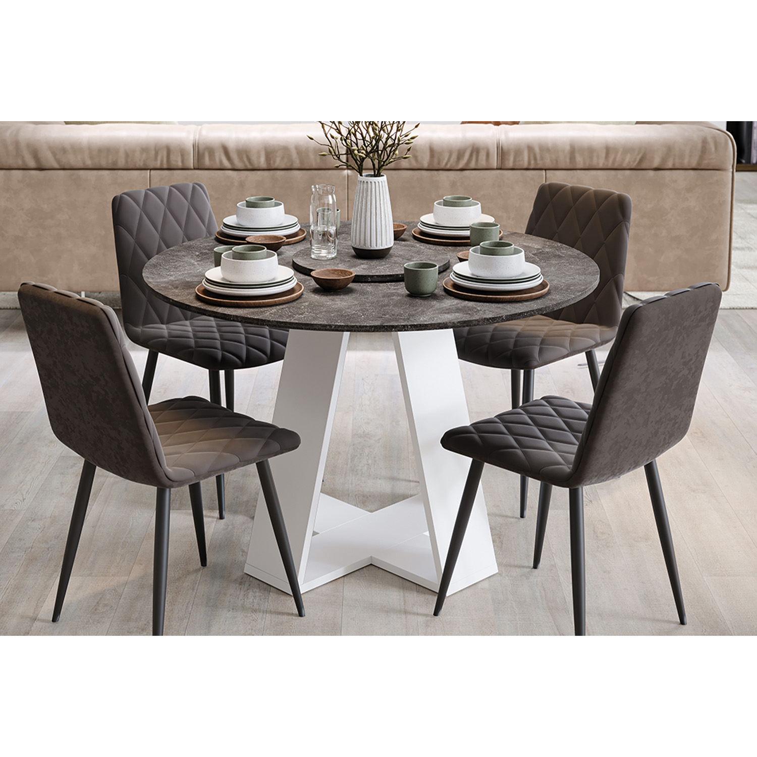 Стол обеденный круглый нераздв.Райнер Тип 1 d1150мм h770мм Белый/Ателье темный+опора мат.белый*1