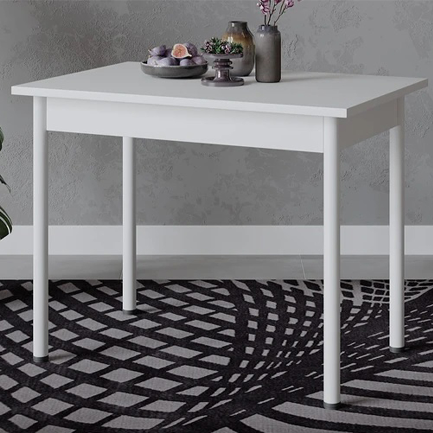 Стол обеденный прямоугольный нераздв.Родос Тип 1 950х640х750мм белый+опора d40 Белый муар Трия*1