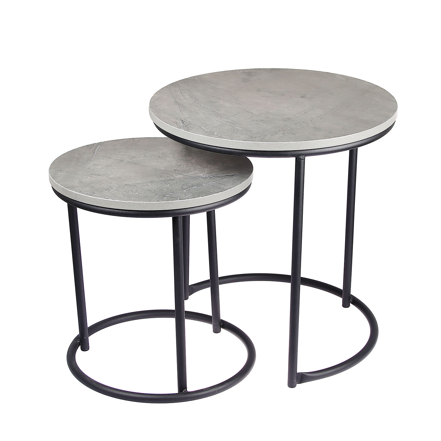 Стол журнальный МАТРЕШКА комплект столешниц 2 шт.ЛДСП Каспий темный+Подстолье труба КРУГЛАЯ ЧЕРНАЯ*1