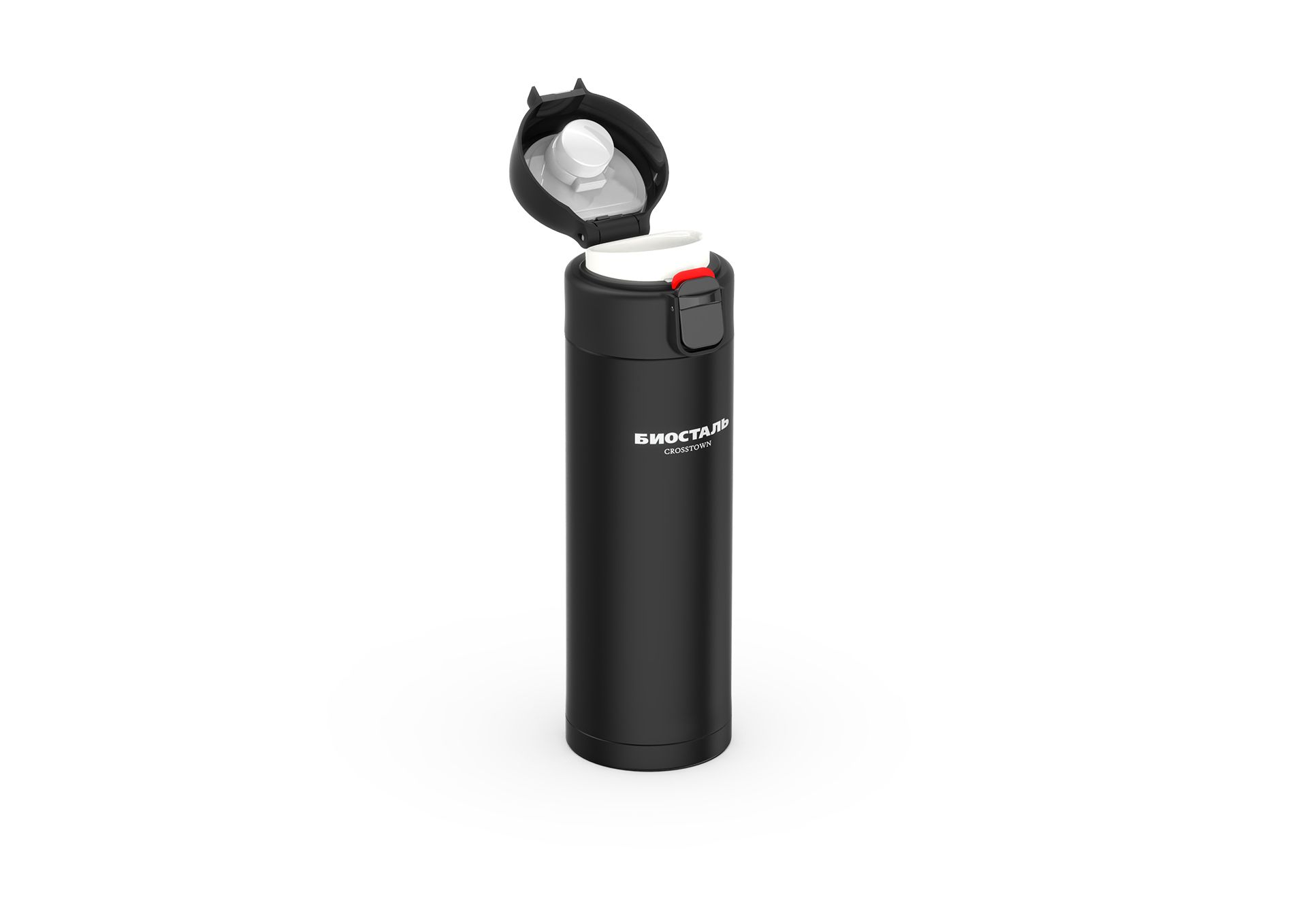 яяяТермос нерж."Биосталь" 0,42л Узк.горло, откидная крышка, "Атласный Чер." NMU-420B"CROSSTOWN"*1/12