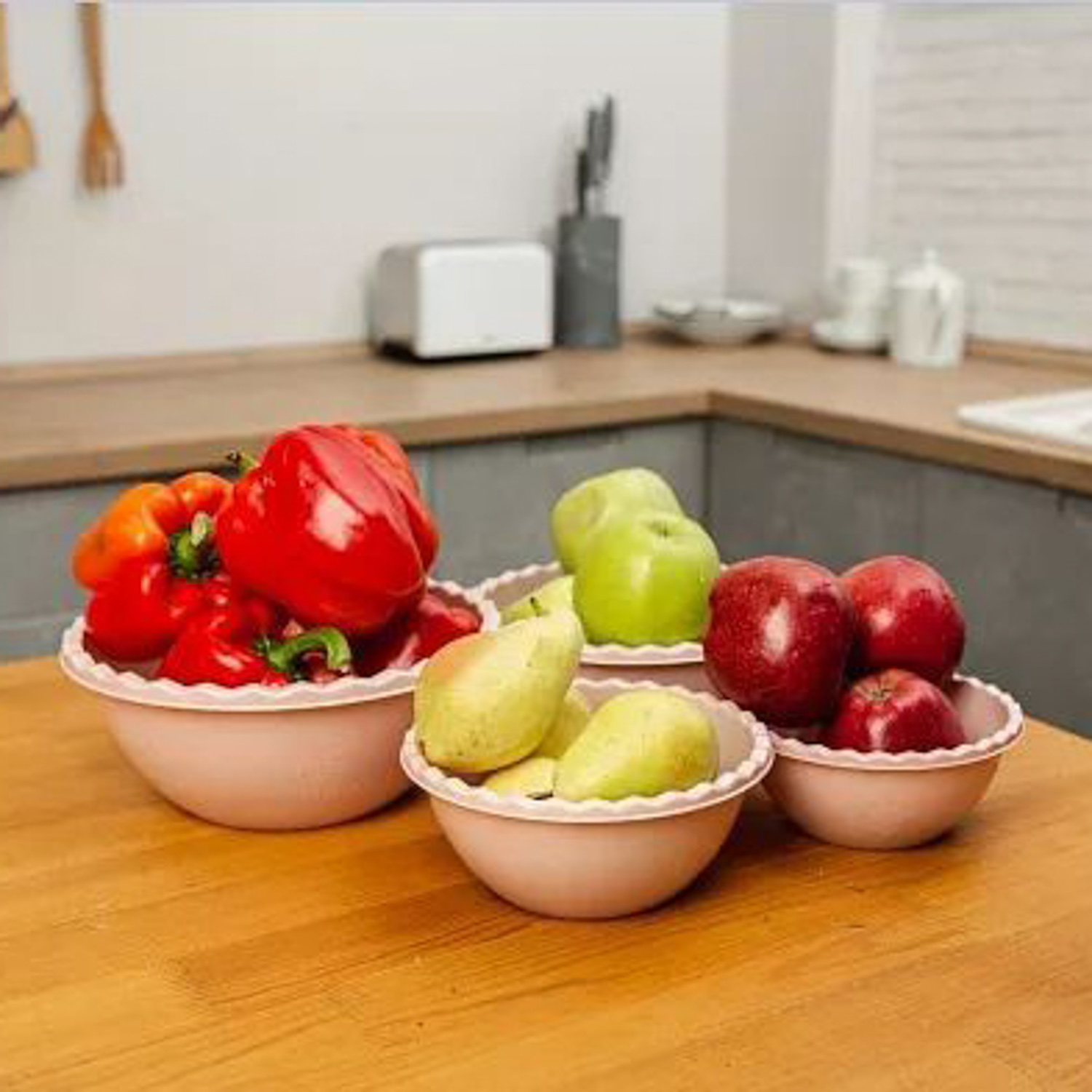 Набор кухонных пластиковых мисок «Laola» состоит из четырех мисок различного объема. Каждая миска в наборе выполнена из высококлассного полимерного сырья, прошедшего тщательную проверку качества, и соответствует ГОСТ стандартам. Используемый в производстве пластик полностью безопасен для здоровья и не содержит посторонних химических примесей. Представленный набор посуды отличается высокой степенью функциональности, так как идеально подходит как для сервировки стола, так и для приготовления пищи.
