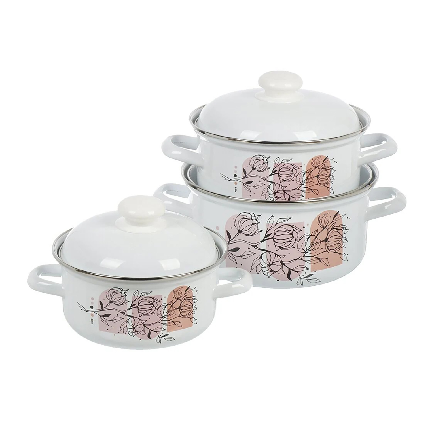 яяяНабор кастрюль эмалированных: 1,5л+2,0л+3,0л рис. "Хлопок" С-124АП2/4 "Лысьвенские ЭМАЛИ" *1
