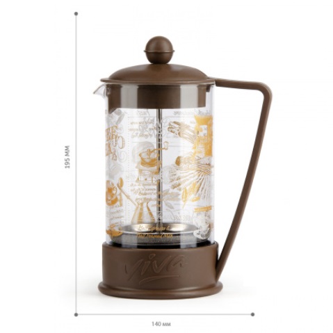 Чайник заварочный жаропрочное стекло "Френч-пресс" 600мл "Viva la Vida" Корич.(BF-750)"Barouge"*1/30