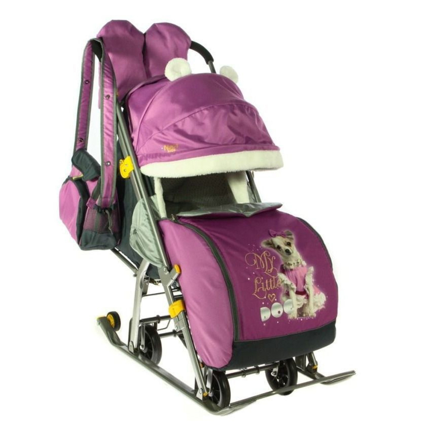 Санки-коляска детские "Ника Детям 7-2" орхидея (сиреневый) рис."щенок" плоск.полозья/колеса НД7-2 *1
