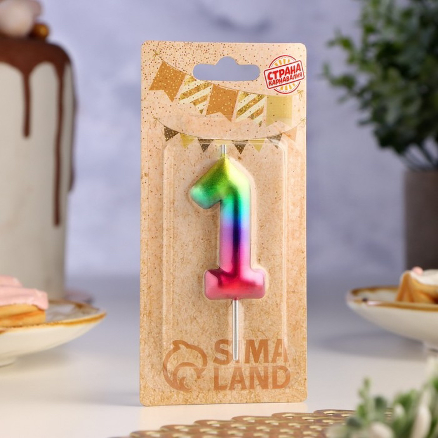Свеча в торт "Акварель", цифра 1, 5,5 см 120313