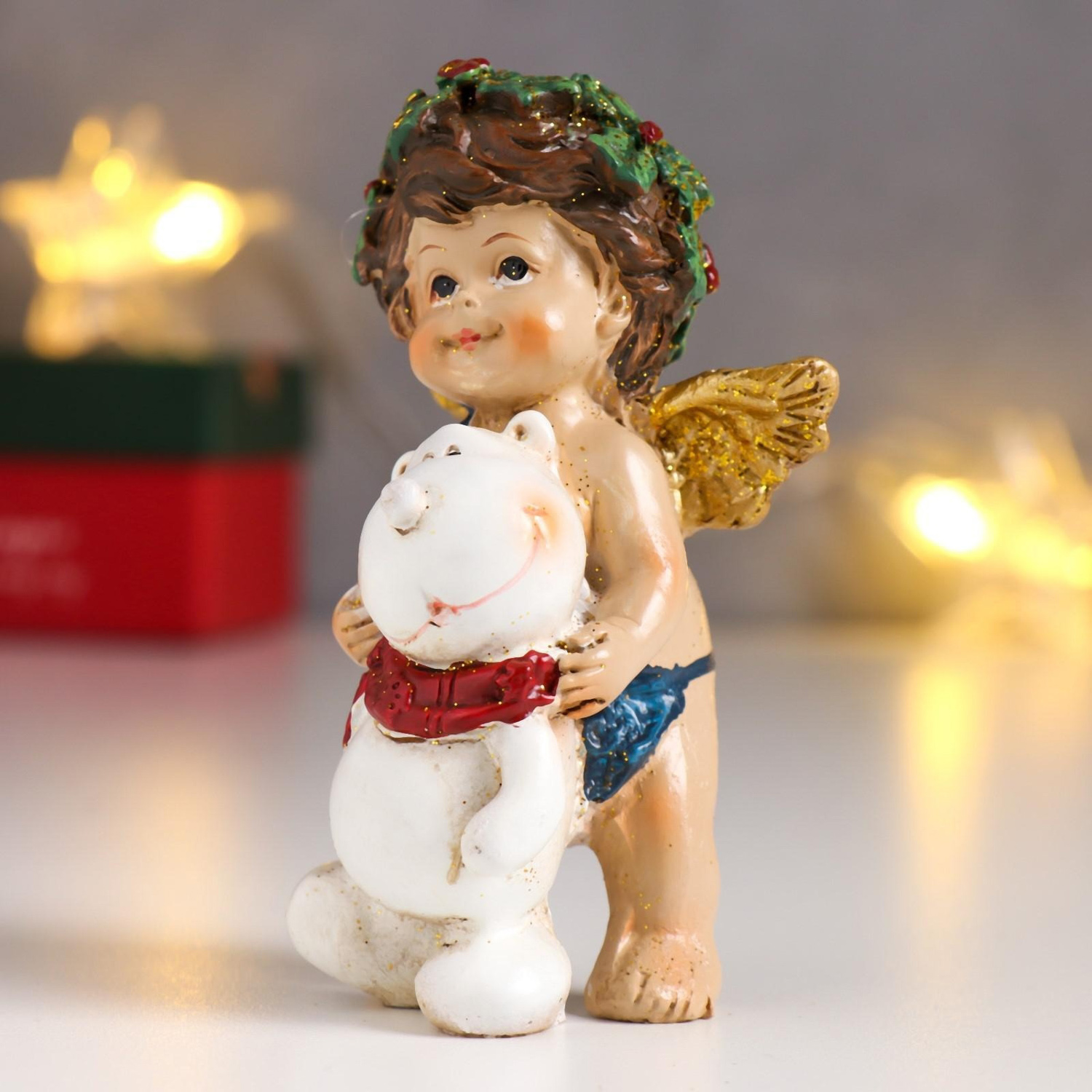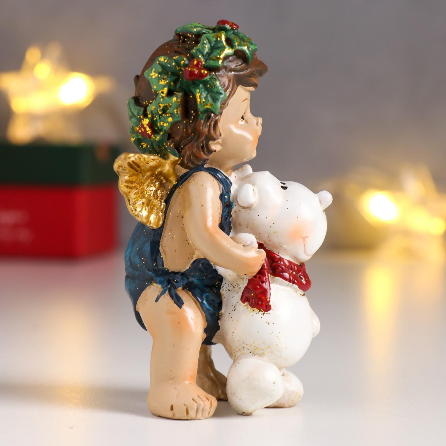 Сувенир полистоун "Ангел-малыш с рождественским венком, с медвежонком" 10,2х5,7х5 см 6257093