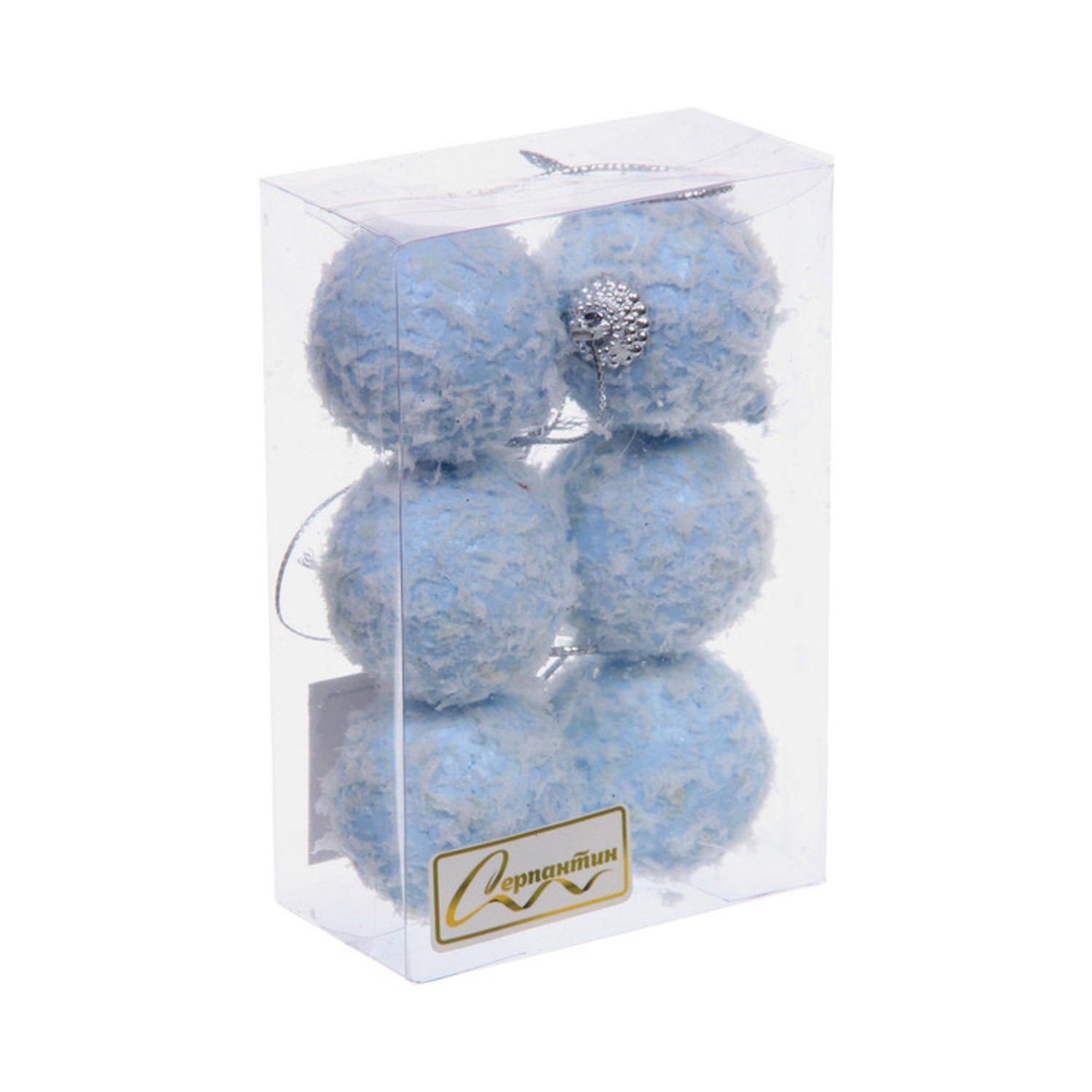 Новогодние шары "Воздушные перья" 4 см (набор 6 шт), голубой