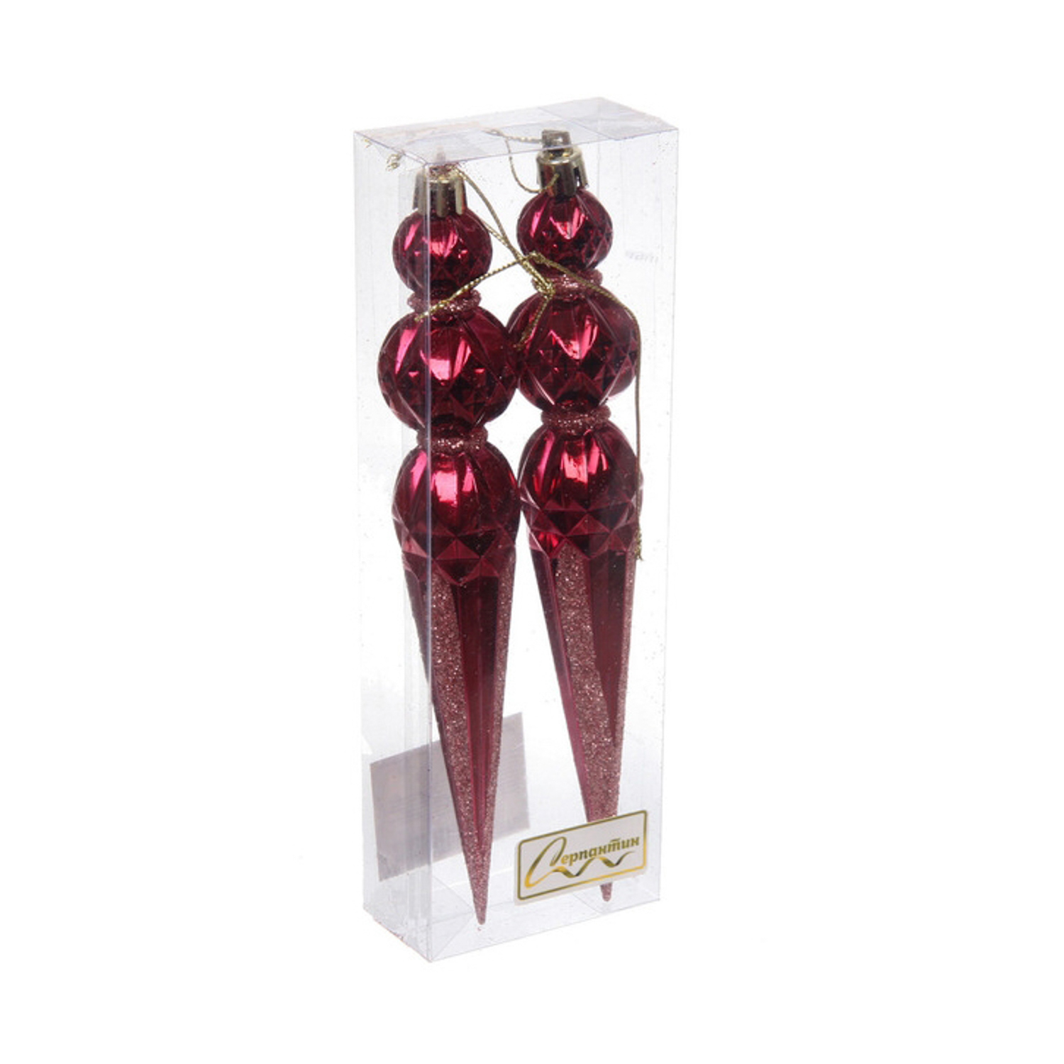 Ёлочные игрушки "Волшебная сосулька" 17,8 см (набор 2 шт), Рубин/розовое золото