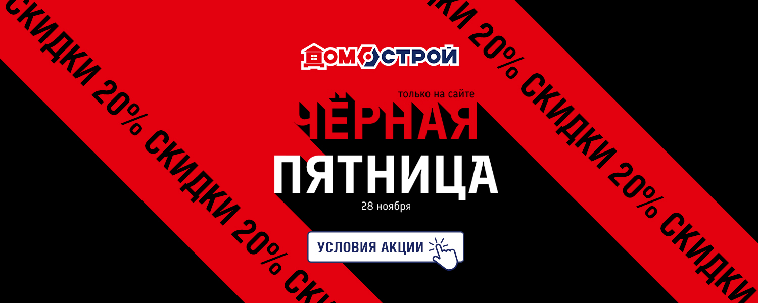 Чёрная пятница 28 ноября в сети ДомоСтрой! Только 1 день 28 ноября на сайте — скидки -20%. Это отличная возможность приобрести напольные покрытия, инструменты, обои, двери и товары для дома по привлекательным ценам! Оформляйте заказы 28 ноября и забирайте в течение 3 дней после.