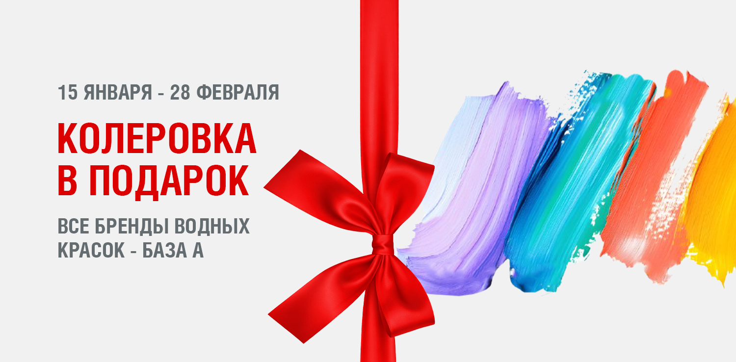 С 15 января 2026 по 28 февраля 2026 при покупке красок на водной основе (база А) - вы получаете колеровку в подарок. Технология компьютерной колеровки поможет вам воплотить любую дизайнерскую задумку. Просто выберите идеальный оттенок!