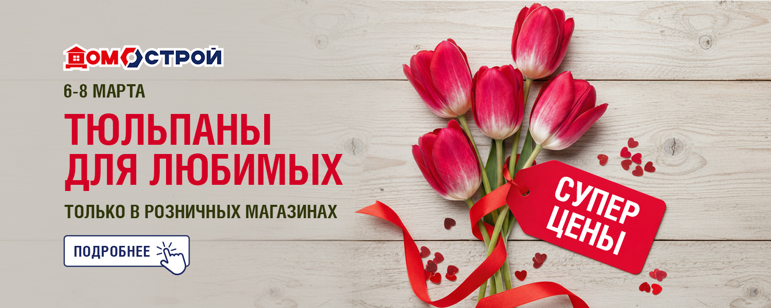 Акция действует 6-8 марта 2026 г. только в розничном магазине ДомоСтрой г. Ирбит. Количество товаров по акционной цене ограничено. Акция не суммируется с промокодами и другими акциями (в том числе со скидками по дисконтной карте, скидкой для пенсионеров и акцией для новоселов). Подробности уточняйте у продавцов-консультантов или операторов интернет-магазина по телефону горячей линии.